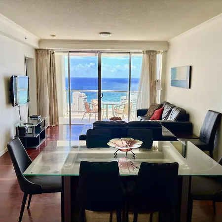 El Luxury Ocean View 2Br Apartment Chevron Renaissance Pool & Spa Gold Coast está situado en Gold Coast, a unos 500 metros del Crazy Cat Cafe, y ofrece a sus huéspedes una piscina exterior durante todo el año y un centro de fitness. Estando en el distrito Surfers' Paradise, este apartamento también se encuentra a unos minutos a pie del Museo de Cera.
